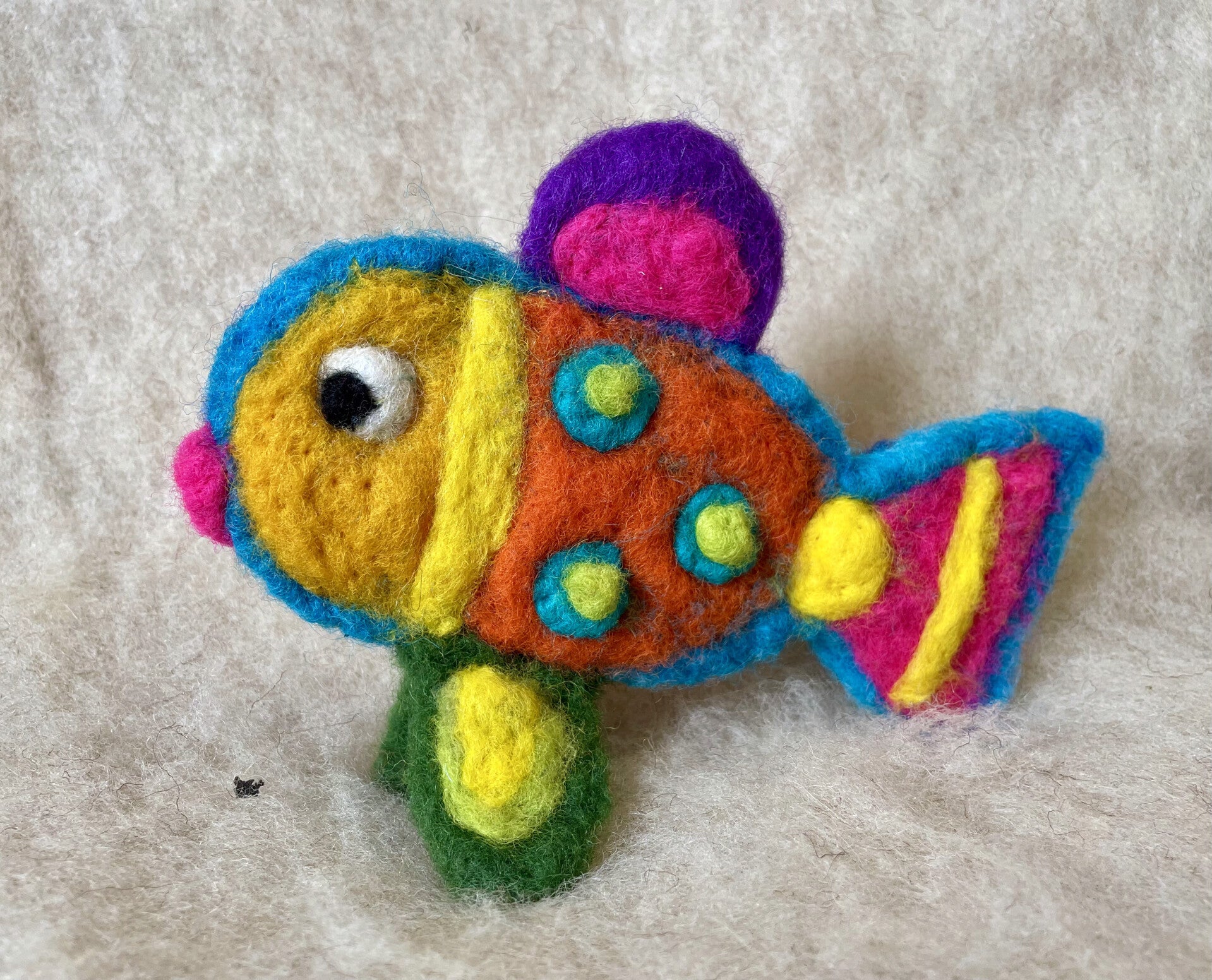 Filzfreundin "Frau Fisch" wird mit einem Nylonfaden geliefert. So kann man sich überlegen, ob man sie aufhängen oder auf ihren beiden Flossen hinstellen möchte. Dann schneiden Sie den Faden einfach wieder ab!